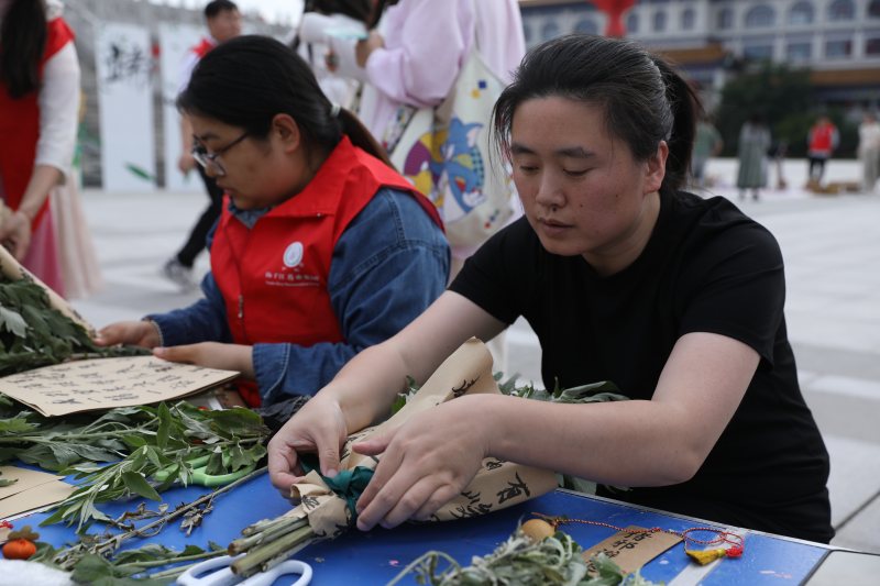 DIY體驗區(qū)熱鬧非凡,五彩繩、香囊、艾葉花束、艾草棒等材料應有盡有,員工自由選擇心儀的制作項目,親手打造出獨具端午特色的紀念品,為家人和朋友驅(qū)邪納福、連接好運。