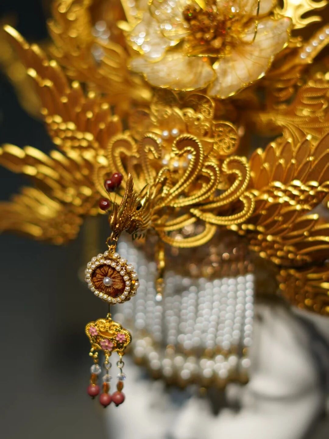 “中藥之冠”由揚(yáng)子江聯(lián)合文化創(chuàng)作博主共同打造,設(shè)計(jì)靈感源自傳統(tǒng)龍鳳冠,既承載了“龍鳳呈祥”“健康長(zhǎng)壽”的美好寓意,又實(shí)現(xiàn)了對(duì)中藥材的藝術(shù)化再造。制作團(tuán)隊(duì)從上百種藥材中精選20余味,用特殊工藝保留藥材天然質(zhì)感與清雅藥香:木蝴蝶被塑造成層疊的牡丹花瓣,金銀花與紅豆搭配成精巧花蕊,冠冕流蘇則由多味藥材研磨制成的香珠串聯(lián)而成,成為可觀賞、可感知的中醫(yī)藥文化新載體。
